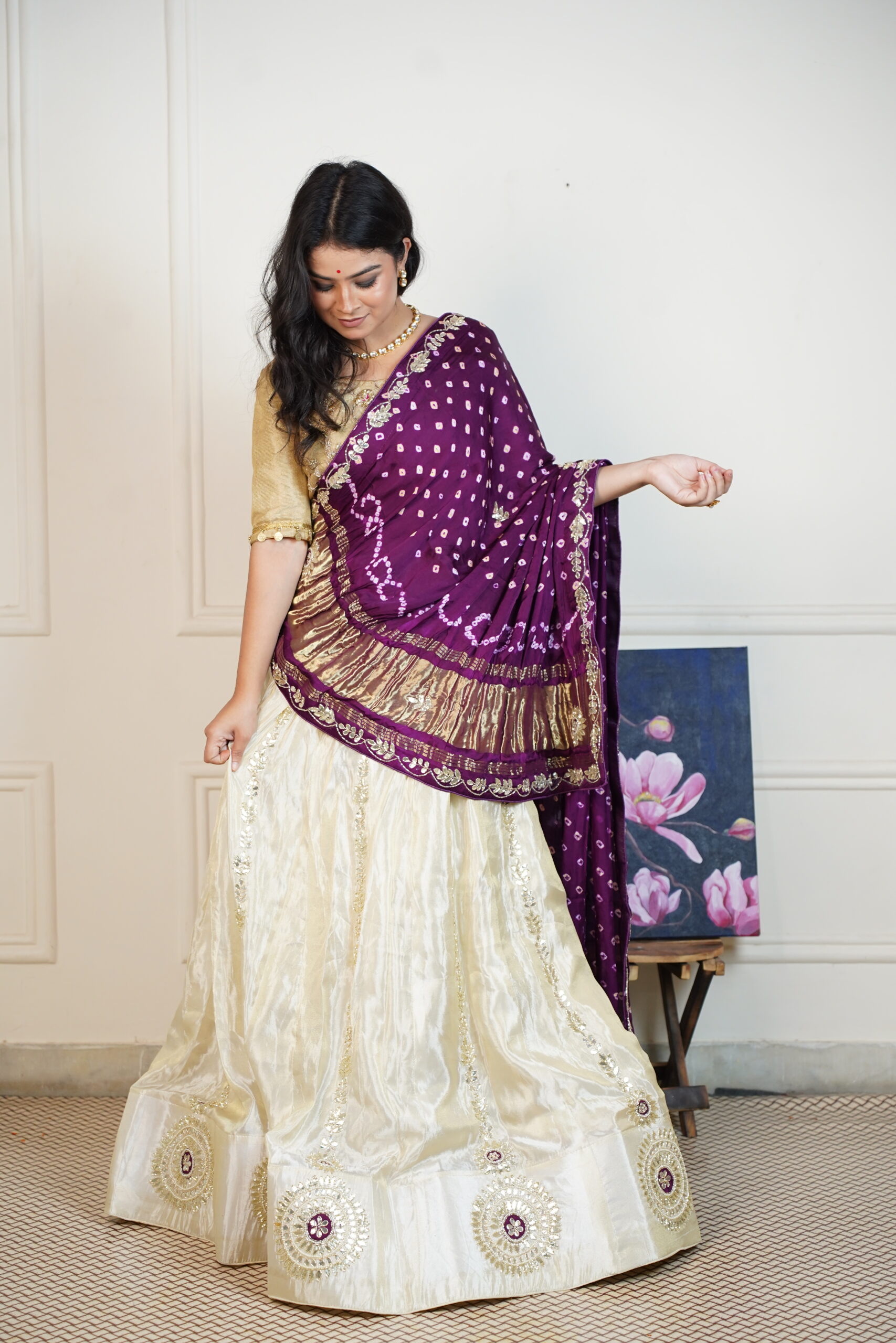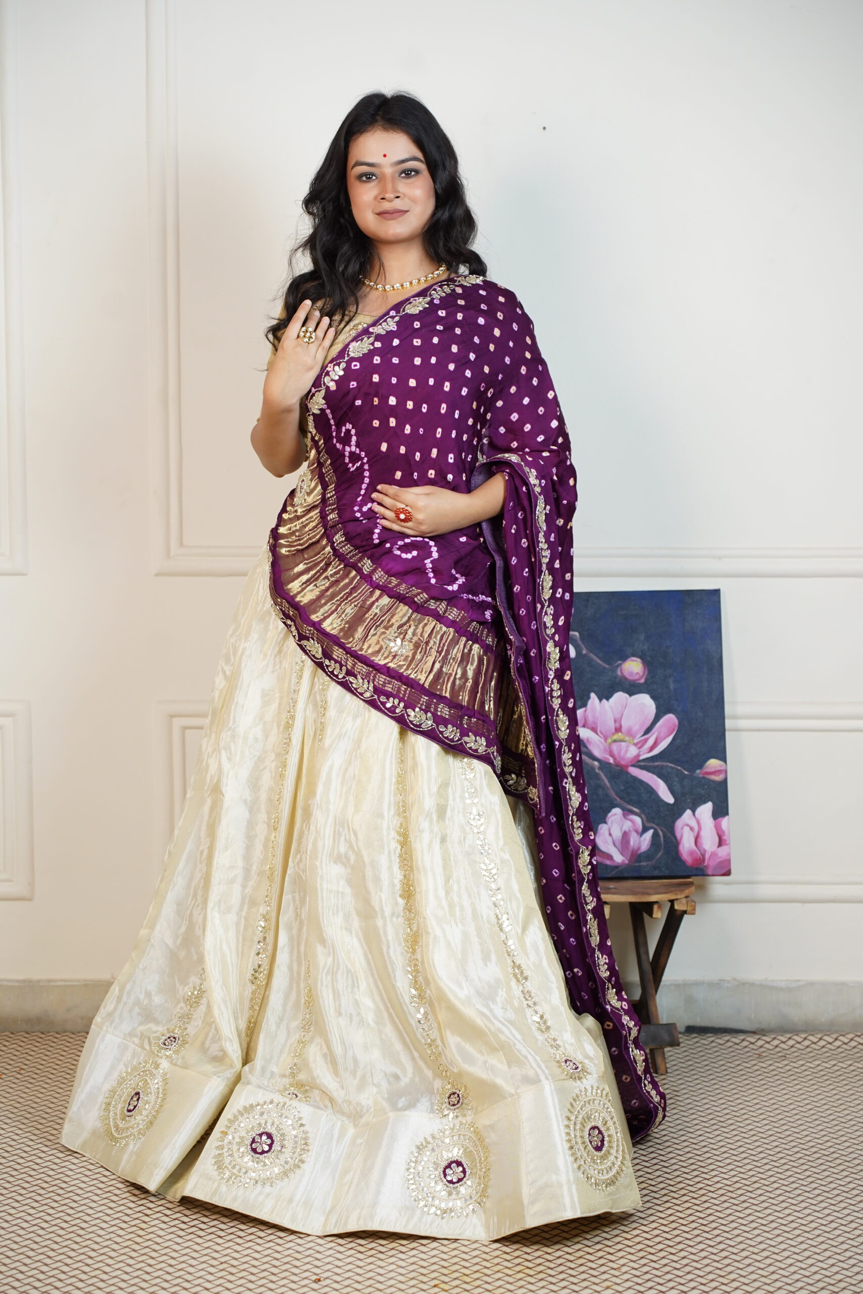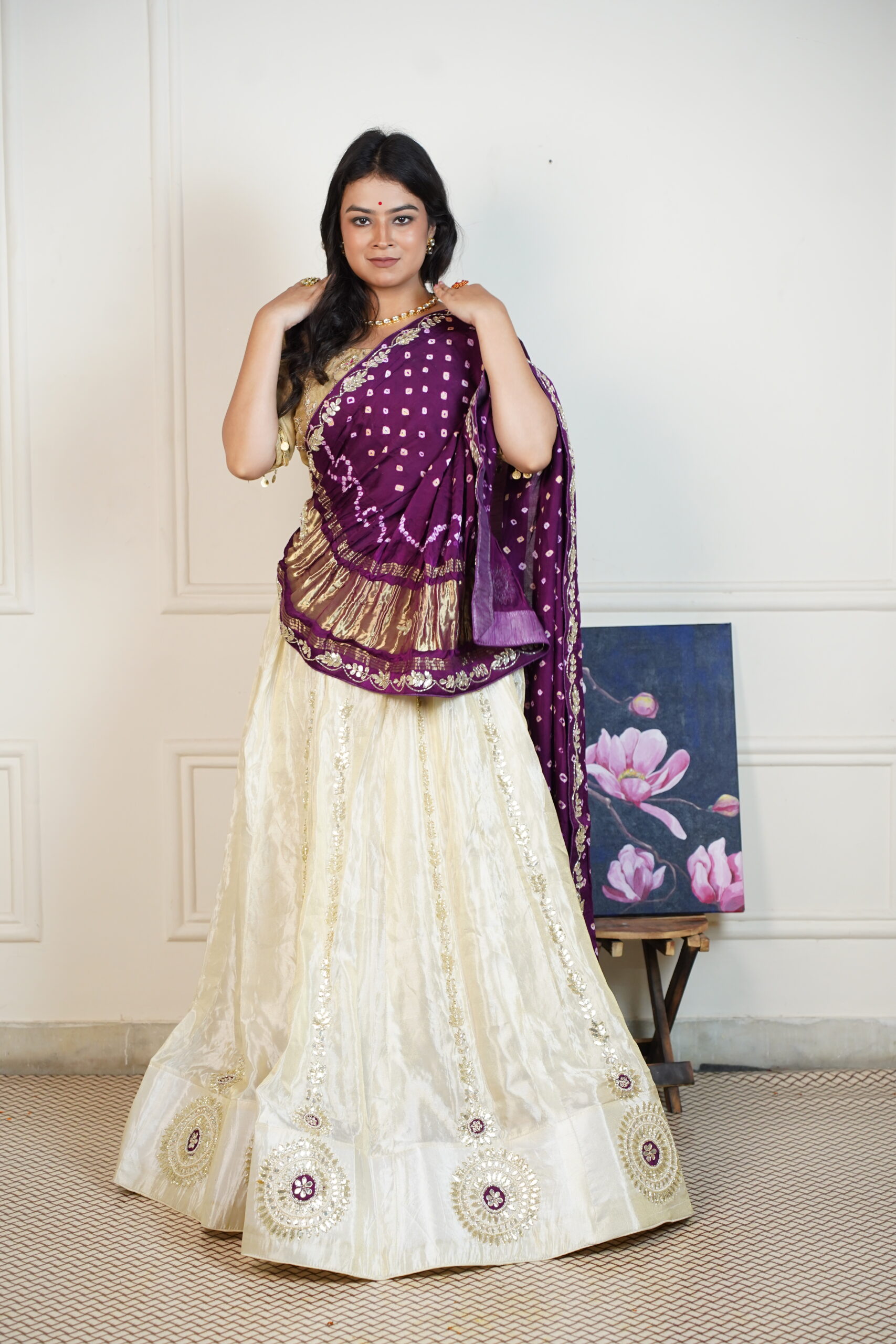 Purple Bandhani Handwork lehenga