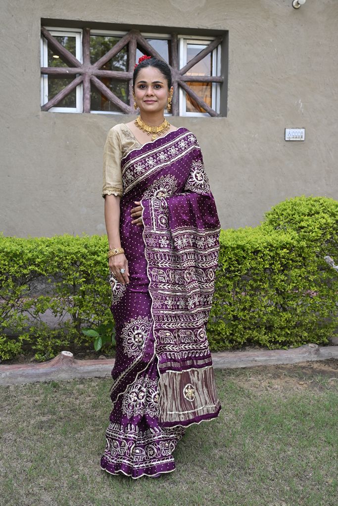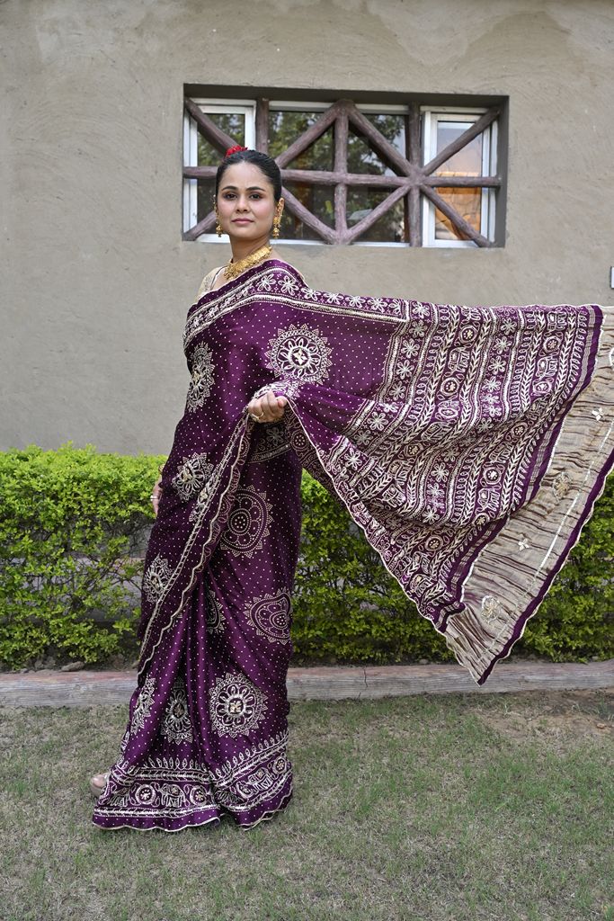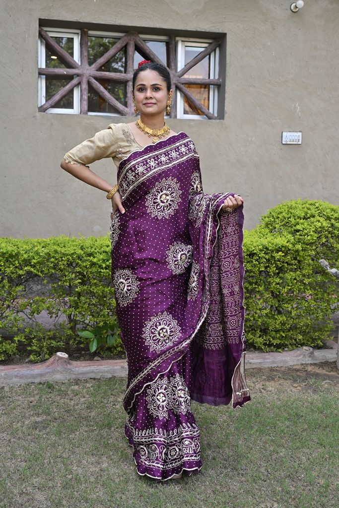 Purple Bandhani Saree