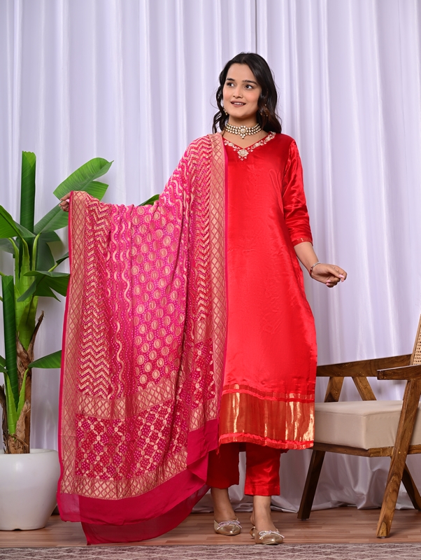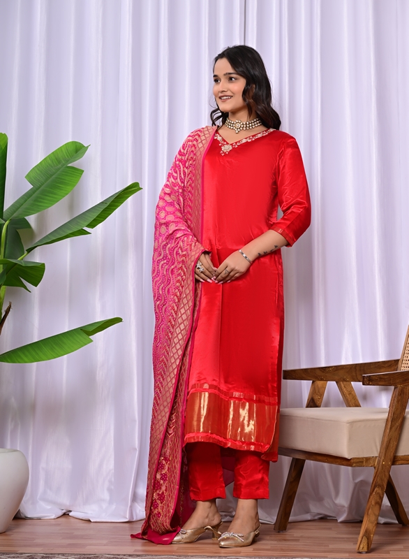 Red Handwork Suit Set
